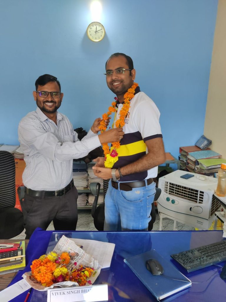 ओरिएंटल इंश्योरेंस कंपनी में विवेक सिंह भदौरिया को असिस्टेंट मैनेजर बनाए जाने पर मुरैना ब्रांच में उनका फूल-मालाओं से भव्य स्वागत कर हार्दिक अभिनंदन किया गया। इस मौके पर ब्रांच मैनेजर चंद्रपाल सिंह ने उन्हें माला पहनाकर उनके उज्ज्वल भविष्य की शुभकामनाएं दीं और कहा कि विवेक आगे भी इसी मेहनत और लगन से कार्य करते हुए नई ऊँचाइयाँ छूएंगे।