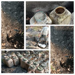 900 किलो महुआ लाहन और 8 लीटर कच्ची शराब जब्त – तीन आरोपी गिरफ्तार