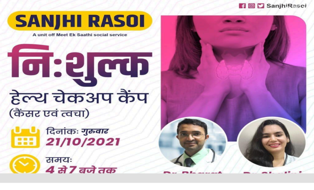 सिर्फ भोजन ही नहीं, सांझी रसोई का मानना है कि स्वास्थ्य भी हर व्यक्ति का अधिकार है। इसी उद्देश्य से संस्था हर वर्ष विभिन्न प्रकार के चिकित्सा शिविरों का आयोजन करती है। वर्ष 2021 में संस्था ने त्वचा रोग व कैंसर विशेषज्ञ डॉक्टरों को आमंत्रित कर निःशुल्क परामर्श शिविर का आयोजन किया, जिसमें सैकड़ों मरीजों ने जांच करवाई।