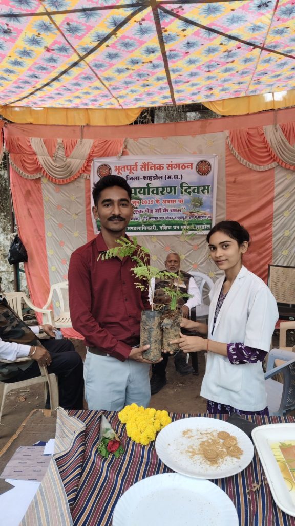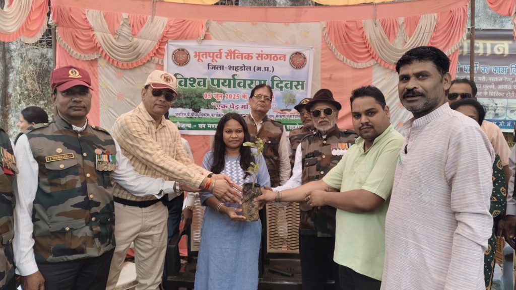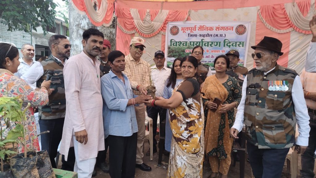 विश्व पर्यावरण दिवस के अवसर पर भूतपूर्व सैनिक संगठन, जिला शहडोल द्वारा दक्षिण वन मंडल शहडोल के सहयोग से पौध वितरण कार्यक्रम का आयोजन किया गया। यह सामाजिक और पर्यावरणीय चेतना से परिपूर्ण कार्यक्रम दोपहर 12 बजे से शाम 6 बजे तक दक्षिण वन मंडल कार्यालय परिसर के मुख्य द्वार के पास संपन्न हुआ, जिसमें नागरिकों को विभिन्न प्रजातियों के पौधों का नि:शुल्क वितरण किया गया।