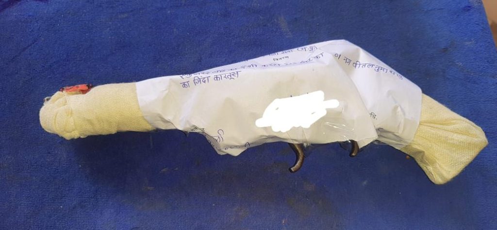 पुलिस ने जब तलाशी ली गई तो उसके पास से एक लोहे का 315 बोर का देशी कट्टा और 1 नग जिंदा करतुश मिला जिसकी कीमत 5000 रुपए हुई तो पुलिस ने उस देशी कट्टा के बारे में लीगल जानकारी मांगी तो युवक नहीं दे पाया और गोल मोल बाते बताने लगा तो पुलिस समझ गई और कारतूस के साथ युवक को थाने लाई और आर्म्स एक्ट का मामला पंजीबद्ध करते हुए आरोपी के पिता को जानकारी देते हुए माननीय न्यायालय में पेश करते हुए सलाखों के पीछे भेज दिया गया।