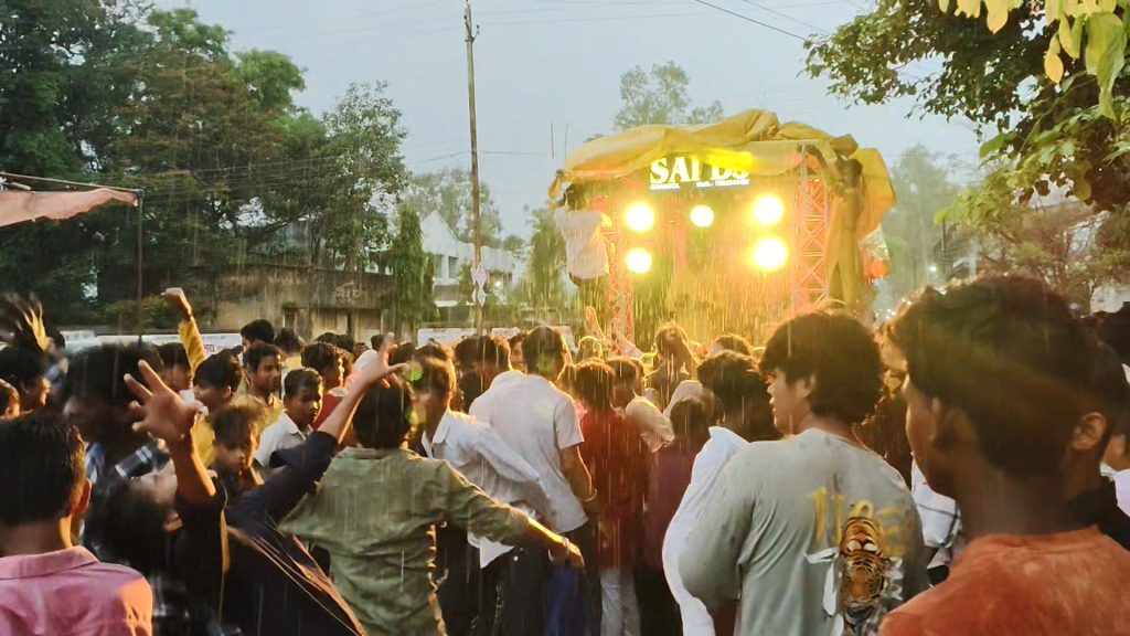 рджреЛрдкрд╣рд░ рдХреЗ рд╕рдордп рд╣рд▓реНрдХреА рдмрд╛рд░рд┐рд╢ рдиреЗ рдХреБрдЫ рджреЗрд░ рдХреЗ рд▓рд┐рдП рд╢реНрд░рджреНрдзрд╛рд▓реБрдУрдВ рдХреЛ рдЫрддреЛрдВ рдФрд░ рджреБрдХрд╛рдиреЛрдВ рдХреЗ рдиреАрдЪреЗ рдЬрд░реВрд░ рдХрд░ рджрд┐рдпрд╛, рд▓реЗрдХрд┐рди рдЬреИрд╕реЗ рд╣реА рдбреАрдЬреЗ рдХреА рднрдХреНрддрд┐ рд╕рдВрдЧреАрдд рдХреА рдзреБрдиреЗрдВ рдмрдЬрдиреЗ рд▓рдЧреАрдВ, рдпреБрд╡рд╛ рднрдХреНрддрдЧрдг рднреАрдЧрддреЗ рд╣реБрдП рд╕рдбрд╝рдХреЛрдВ рдкрд░ рдЭреВрдордиреЗ рд▓рдЧреЗред рдмрд╛рд░рд┐рд╢ рднреА рднрдХреНрддреЛрдВ рдХреА рдКрд░реНрдЬрд╛ рдФрд░ рдЙрддреНрд╕рд╛рд╣ рдХреЛ рд░реЛрдХ рди рд╕рдХреАред