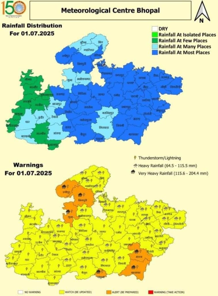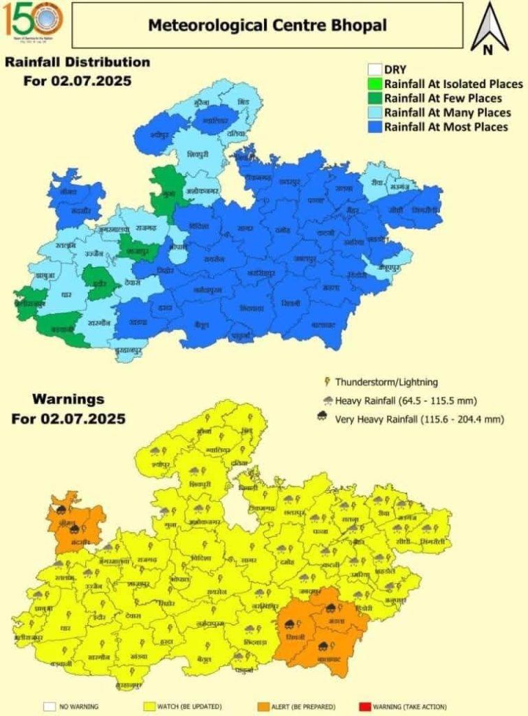 тЮбя╕П рдЕрддрд┐ рднрд╛рд░реА рдмрд╛рд░рд┐рд╢ (рдСрд░реЗрдВрдЬ рдЕрд▓рд░реНрдЯ): рдиреАрдордЪ, рдордВрджрд╕реМрд░, рд╕рд┐рд╡рдиреА, рдордВрдбрд▓рд╛, рдмрд╛рд▓рд╛рдШрд╛рдЯ