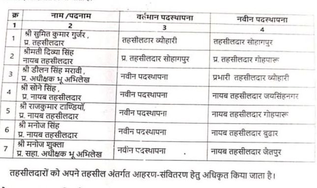 प्रशासनिक फेरबदल की बड़ी कार्रवाई: शहडोल जिले में तहसील स्तर पर अधिकारियों के तबादले