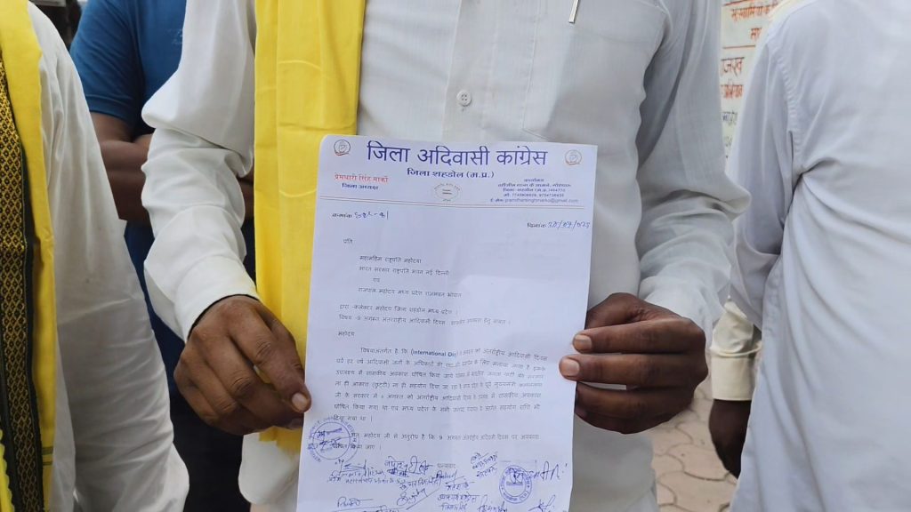 जिला आदिवासी कांग्रेस शहडोल ने केंद्र और राज्य सरकार से माँग की है कि 9 अगस्त को मनाए जाने वाले ‘अंतर्राष्ट्रीय आदिवासी दिवस’ पर मध्य प्रदेश में शासकीय अवकाश घोषित किया जाए। इस सिलसिले में कांग्रेस संगठन ने राष्ट्रपति और राज्यपाल को संबोधित ज्ञापन कलेक्टर के माध्यम से सौंपा।