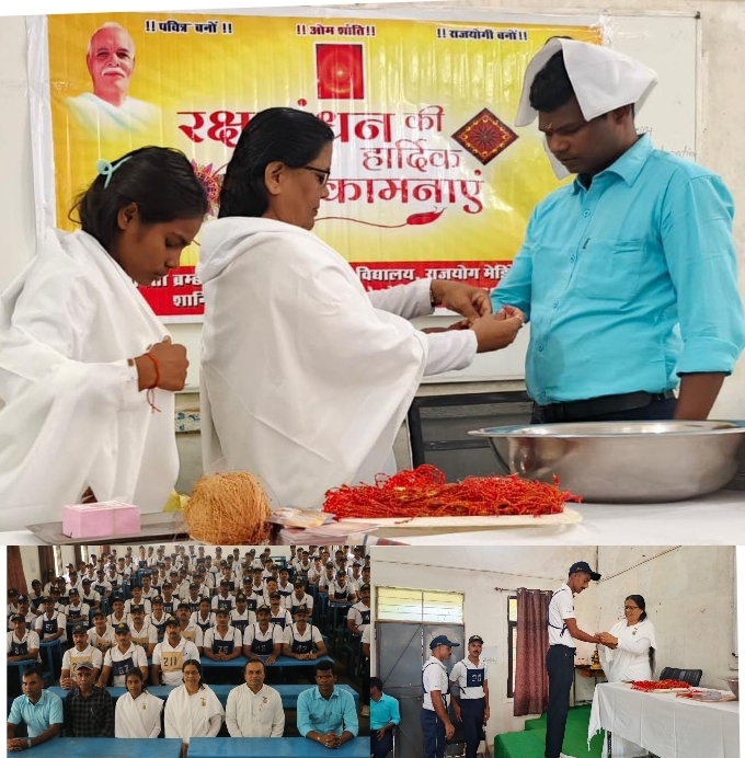 यस न्यूज ब्यूरो रिपोर्ट उमरिया उमरिया -अतिरिक्त पुलिस महानिदेशक (प्रशिक्षण), राजा बाबू सिंह के कुशल मार्गदर्शन में एवं पुलिस प्रशिक्षण विद्यालय उमरिया के पुलिस अधीक्षक मुकेश वैश्य के निर्देशन में, पुलिस प्रशिक्षण विद्यालय उमरिया में प्रतिवर्षानुसार इस वर्ष भी9 अगस्त को रक्षाबंधन के पुनीत पर्व पर पीटीएस उमरिया में प्रजापिता ब्रह्माकुमारी ईश्वरीय विश्वविद्यालय उमरिया की ब्रह्माकुमारीबहनों द्वारा इकाई के अधि०/कर्मचारियों एवं प्रशिक्षणरत् नवआरक्षक सैनिक भाइयों की कलाई पर रक्षासूत्र बांधा गया तथा मुख मीठा कराया गया साथ ही सभी सैनिक भाइयों को तनाव मुक्त क्रोध मुक्त व व्यसन मुक्त होने का संकल्प कराया गया।