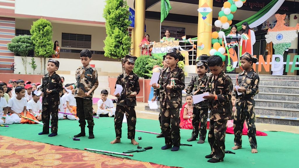 कार्यक्रम की शुरुआत एल.के.जी. और यू.के.जी. के बच्चों द्वारा प्रस्तुत देशभक्ति नृत्य “देश रंगीला” से हुई। इसके पश्चात अनन्या द्विवेदी ने अंग्रेज़ी भाषण प्रस्तुत किया। एक प्रेरणादायक समूह गीत “उठो साथियों…” की प्रस्तुति ने माहौल को उत्साह से भर दिया। कक्षा 1 के विद्यार्थियों ने “काले मेघा…” पर नृत्य कर दर्शकों को मंत्रमुग्ध कर दिया। श्रेयश श्रीवास्तव ने प्रभावशाली हिंदी भाषण दिया। कक्षा 2 से 5 के विद्यार्थियों ने “वंदे मातरम्” पर सुंदर नृत्य प्रस्तुत किया। इसके बाद देशभक्त उधम सिंह के बलिदान पर आधारित एक भावनात्मक नाटक मंचित किया गया। कार्यक्रम में एक संगीतमय ऑर्केस्ट्रा की भी प्रस्तुति हुई। कक्षा 6 से 9 के विद्यार्थियों ने देशभक्ति मिक्स नृत्य प्रस्तुत कर कार्यक्रम को गौरवपूर्ण रूप से विराम दिया।