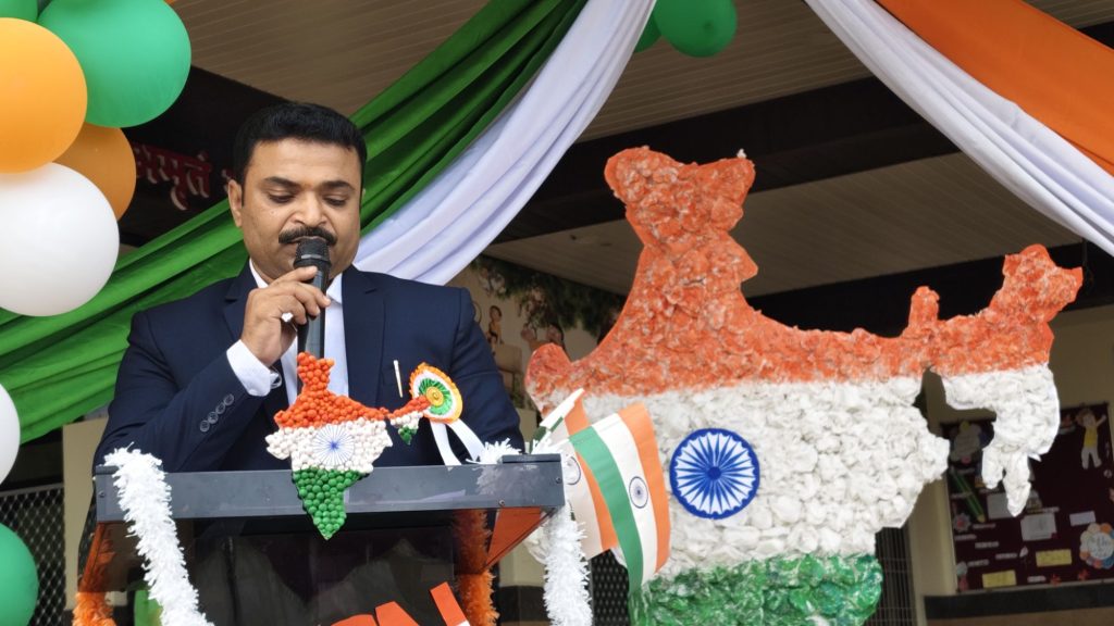 विद्यालय के प्राचार्य श्री अमित कुमार घोष ने विद्यार्थियों को संबोधित करते हुए स्वतंत्रता के महत्व, राष्ट्र के प्रति कर्तव्यों और नैतिक मूल्यों की चर्चा की। उन्होंने विद्यार्थियों को न केवल अपने लक्ष्यों के प्रति दृढ़ रहने, बल्कि समाज और देश की सेवा में अग्रणी भूमिका निभाने की प्रेरणा दी।