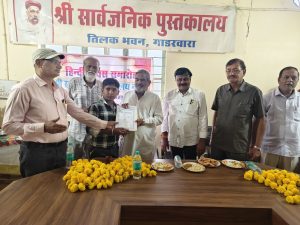 गाडरवारा। हिंदी पखवाड़ा कार्यक्रम के अंतर्गत स्थानीय श्री सार्वजनिक पुस्तकालय द्वारा आयोजित की गई निबंध तथा सुलेख प्रतियोगिता में चयनित छात्र छात्रों को पुस्तकालय भवन में पुरस्कार का वितरण पूर्व राज्यसभा सांसद कैलाश सोनी तथा नगर पालिका अध्यक्ष शिवाकांत मिश्रा के आतिथ्य में बीते रविवार को किया गया। इस अवसर पर वरिष्ठ साहित्यकार कुशलेन्द्र श्रीवास्तव एवं पुस्तकालय अध्यक्ष अनिल गुप्ता भी मंचासीन रहे। सर्वप्रथम अतिथियों ने माँ सरस्वती का पूजन कर कार्यक्रम का शुभारंभ किया। तदोपरांत अतिथियों का स्वागत फूल माला पहनाकर किया गया। कार्यक्रम में श्री सोनी एवं श्री मिश्रा का श्री सार्वजनिक पुस्तकालय समिति के पदाधिकारियों ने शाल, श्रीफल से सम्मान किया। कार्यक्रम को सम्बोधित करते हुए कैलाश सोनी ने कहा कि गाडरवारा हमेशा से ही साहित्यिक विरासतों एवं उपलब्धियों के लिए प्रसिद्ध रहा है। यहाँ के लोगो में अच्छे से अच्छा कार्य करने के लिए जूनून है। श्री सार्वजनिक पुस्तकालय का संचालन अनेक वर्षो से निर्विवाद रूप से जारी है जो कि एक बड़ी उपलब्धि है। उन्होंने सम्मानित हुए विद्यार्थियों से कहा कि वे शुद्ध लेख लिखने का अभ्यास हमेशा करते रहें। शिवाकांत मिश्रा ने अपने उदबोधन में श्री सोनी के व्यक्तिव की प्रशंसा करते हुए कहा कि उन्होंने अपने कार्यों एवं समर्पण से बेहतर छवि बनाई है। आज बड़े ही प्रसन्नता का विषय है कि श्री सोनी जी की उपस्थिति हम सभी के बीच हुई है। उन्होंने कार्यक्रम में आमंत्रण हेतु पुस्तकालय समिति को धन्यवाद दिया। साहित्यकार कुशलेन्द्र श्रीवास्तव ने कहा कि पुस्तकालय में सभी प्रकार के साहित्यो का समावेश है। वर्षो पुरानी पुस्तकें यहाँ अभी भी उपलब्ध है। उन्होंने कहा कि हिंदी विषय के प्रति छात्र छात्राओं में जिज्ञासा एवं लगाव हमेशा होना चाहिए। कार्यक्रम का मंच संचालन सचिव बसंत तपा एवं प्रतियोगिता के संयोजक नगेन्द्र त्रिपाठी ने संयुक्त रूप से किया। कार्यक्रम के अंत में सुलेख एवं निबंध प्रतियोगिता में विभिन्न विद्यालयों से शाला स्तर पर प्रथम, द्वितीय एवं तृतीय स्थान प्राप्त छात्र छात्राओं को अतिथियों ने साहित्य एवं प्रशस्ति पत्र भेंटकर सम्मानित किया। कार्यक्रम में पूर्व अध्यक्ष धनराज चौकसे, डॉ उमाशंकर दुबे, ज्ञानचंद डागा, कोषाध्यक्ष आलोक खजाँची,कन्हैया लाल यादव, कमल ठाकुर, चंद्रभान पटेल, कमल साहू, विनोद सोनी, सहसचिव शरद खजाँची, आयुष कठल, नेतराम श्रीवास शिक्षक विनोद सोनी, मधुसूदन पटैल, राजेंद्र गुप्ता,विजय नामदेव, पोषराज मेहरा, दीपक गुप्ता, प्रीती सोनी सहित नगर के गणमान्य नागरिक, पत्रकार एवं छात्र छात्राएं उपस्थित रहे ।