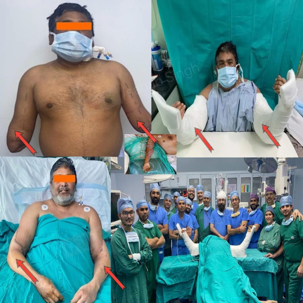 अस्पताल के प्लास्टिक सर्जरी विभाग के चेयरमैन डा. महेश मंगल और डॉक्टर निखिल झुनझुनवाला समेत कई डॉक्टरों ने करीब 12 घंटे की सर्जरी कर युवक के दोनों हाथ जोड़े. डॉक्टर निखिल झुनझुनवाला ने बताया कि सर्जरी के बाद युवक के हाथ में काफी सुधार है. मरीज कोहनी से हाथ चलाने में भी सक्षम है. आगे उसमें और भी सुधार आएगा. हाथ में रक्त का संचार ठीक से हो रहा है। डॉक्टरों ने बताया ट्रेन हादसे में युवक का एक हाथ कोहनी से और दूसरा हाथ कोहनी से थोड़ा नीचे से कट गया था. जिस अस्पताल में पीड़ित का इलाज हुआ उस अस्पताल में सर्जरी करके दोनों हाथों को नीचे से बंद कर दिया गया था. हमने सर्जरी करके बंद जगह को खोलकर नीचे से दोनों हाथों को जोड़ दिया. डॉक्टर महेश मंगल के मुताबिक दोनों हाथों को प्रत्यारोपित करना चुनौतीपूर्ण था. दान में मिले हाथों को डोनर की कोहनी के उपर से निकाला गया और उसे युवक को जोड़ दिया गया. इस दौरान हाथ की नसों, धमनियों व हड्डियों को बारी-बारी से जोड़ा गया. सर्जरी सफल रही।