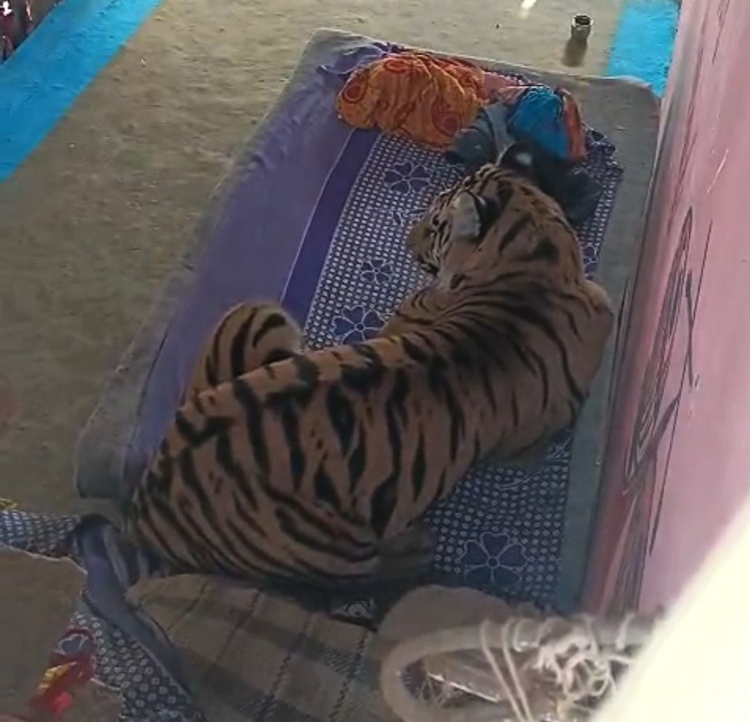 टाइगर का घर में कब्जा,लोगो का उमड़ा भीड़, ठंडी में गर्म बिस्तर का आनन्द