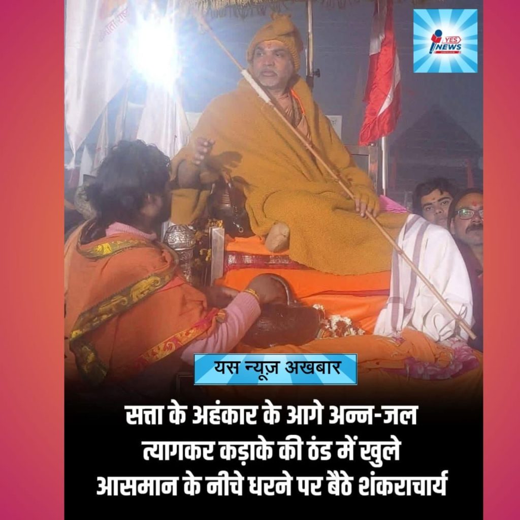 जगद्गुरु स्वामी अविमुक्तेश्वरानंद अपने समर्थकों के साथ बैठे धरने में