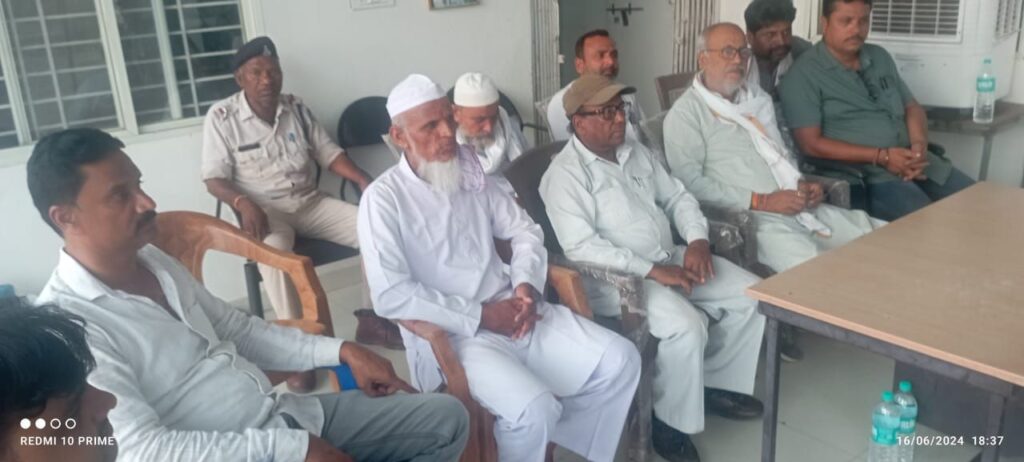 मुस्लिम समुदाय का महत्वपूर्ण त्यौहार ईदुलजुहा दिनांक 17 जून 2024 को मनाया जाना है इसके उपलक्ष्य में चौकी केशवाही में शांति समिति की मीटिंग शाम को 06 बजे की गई, यह मीटिंग नायब तहसीलदार चंद्र सिंह मरावी के अध्यक्षता में की गई ।