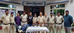गाडरवारा । पुलिस अधीक्षक नरसिंहपुर अमित कुमार के मार्गदर्शन में एवं अतिरिक्त पुलिस अधीक्षक नरसिंहपुर नागेन्द्र पटेरिया एवं श्रीमान अनुविभागीय अधिकारी (पुलिस) गाडरवारा रत्नेश मिश्रा के निर्देशन एवं थाना प्रभारी गाडरवारा उमेश तिवारी के नेतृत्व में थाना गाडरवारा पुलिस ने अवैध मादक के विरूद्ध बी.एन.एस.एस. के तहत जिले में प्रथम कार्यवाही करते हुए अवैध मादक पदार्थ स्मैक की जप्ती सहित तीन आरोपीगण को गिरफ्तार करने में सफलता प्राप्त की है । पुलिस अधीक्षक नरसिंहपुर के द्वारा जिले में मादक पदार्थों के अवैध कारोबार में लिप्त अपराधियों की धरपकड़ के लिये ऑपरेशन प्रहार चलाया जा रहा है । इसी तारतम्य में थाना गाडरवारा पुलिस ने दिनांक 25/07/2024 को थाना गाडरवारा की पुलिस टीम विवेचना हेतु नरसिंहपुर तरफ जाते समय यात्री प्रतीक्षालय के पास बोहानी गाडरवारा रोड में तीन व्यक्ति संदिग्ध अवस्था में दिखाई दिये जिनसे नाम पूछने पर तीनों मोटरसाईकल से भागने का प्रयास करने लगे । संदेह के आधार पर घेराबंदी कर पुलिस टीम द्वारा तीनों संदेहियान पकड़ा गया । जिन्होने पूछताछ पर अपना नाम
