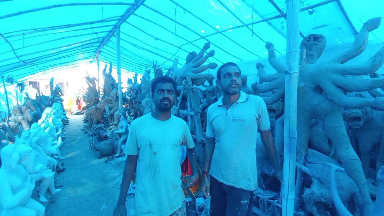 राजेश कुमार ने बताया कि वह हर वर्ष अपने गांव में मूर्तियों का निर्माण कर उन्हें केशवाही में बेचते हैं। हालांकि, अकेले मूर्तियाँ बनाना उनके लिए चुनौतीपूर्ण होता है, इसलिए फिनिशिंग के लिए उन्हें बाहर से मूर्तिकारों की मदद लेनी पड़ती है। इस वर्ष उन्होंने बंगाल से मूर्तिकार **पियासूत्रधर** को बुलाया है, जो उनके साथ कार्य कर रहा है। पियासूत्रधर को 500 रुपये प्रति दिन की मजदूरी दी जा रही है।