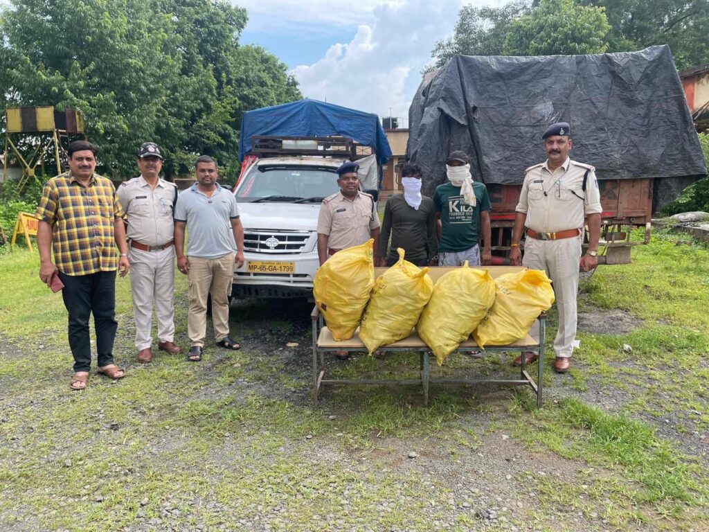 29 अगस्त को बिजुरी पुलिस को मुखबिर की सूचना प्राप्त हुई कि एक चार पहिया टाटा योद्धा पिकअप क्रमांक एमपी 65जी ए 1799 में अवैध अंग्रेजी शराब राजनगर से मेंनटोला टोल प्लाजा तरफ परिवहन कर ले जा रहा है जिस सूचना पर रेड कार्यवाही कर बिजुरी पुलिस द्वारा घेराबंदी कर उक्त पिकअप वाहन को पकड़ा गया जिसकी तलाशी ली गई उक्त पिकअप वाहन में 60 लीटर बीयर एवं 72 लीटर गोवा अंग्रेजी शराब कुल 132 लीटर अवैध अंग्रेजी शराब मौके पर बरामद की गई संपूर्ण रेड कार्रवाई में 9 लाख का मशरूका आरोपियों से बरामद किया गया तथा आरोपीगण राजेश कुमार साहू पिता जगन्नाथ साहू उम्र 35 वर्ष निवासी बाजार दवाई राजनगर एवं महेंद्र कहार पिता स्व. करण सिंह कहार उम्र 33 वर्ष निवासी नरसिंहपुर के विरुद्ध थाना में अपराध धारा 34(2 ) आबकारी एक्ट का अपराध पंजीबद्ध किया जाकर अनुसंधान किया जा रहा है एवं आरोपीगणों को न्यायालय में जेआर पर न्यायिक हिरासत में भेज दिया गया है उक्त रेड कार्यवाही के दौरान थाना प्रभारी बिजुरी निरीक्षक विकास सिंह, उप निरीक्षक उदित नारायण मिश्रा, सहायक उप निरीक्षक प्रदीप अग्निहोत्री, सहायक उप निरीक्षक कमलेश तिवारी, प्रधान आरक्षक सतीश मिश्रा, आरक्षक लक्ष्मण डांगी, आरक्षक प्रभाकर त्रिपाठी, आरक्षक रवि सिंह एवं चालक आरक्षक अनिल मरावी का सराहनीय भूमिका रही।