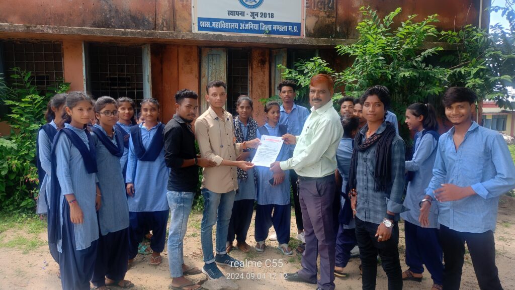 मंडला जिले के महाविद्यालय अंजनिया में अनेको समस्या होने के कारण अखिल भारतीय विद्यार्थी परिषद के नगर इकाई द्वारा महाविद्यालय के प्राचार्य को ज्ञापन दिया गया है l इस दौरान उन्होंने ज्ञापन में बाताया है कि महाविद्यालय के शौचालय की नियमित सफाई न होंनें के चलते गंदगी बनी रहती है जिसे रोजाना सफाई करें ताकि विद्यार्थियों को असुविधा न हो, और छात्रों के लिए अनिवार्य रूप से सेल्फ डिफेंस की कक्षाए चालू की जाए, वहीं महाविद्यालय में पीने के पानी की उचित व्यवस्था नहीं है, जिसमें गंभीरता ली जाएं l ज्ञापन के अंतिम चरण की बिंदु में उन्होंने कहा कि नवीन विद्यालय का जो निर्माण हो रहा है, उसे जल्द से जल्द पूर्ण कराए l