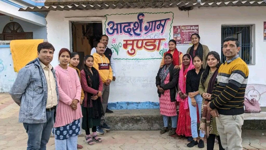 ग्राम मुण्डा में आदर्श ग्राम विषय को लेकर जिला समन्वयक रवींद्र शुक्ला के मार्गदर्शन मे बैठक सर्वप्रथम मां दुर्गा की पूजा अर्चना माल्यार्पण कर बैठक का आयोजन किया गया साथ ही सभी अतिथियों का स्वागत वंदन अभिनंदन किया गया। जैविक खेती को प्रोत्साहन देने हेतु दीवार लेखन किया गया, उसके साथ जैविक खेती में रुचि रखने वाले किसानों का सम्मान किया गया । जिला समन्वयक ने बताया आदर्श ग्रामों को गांव समुदाय के भीतर स्वास्थ्य, स्वच्छता, हरियाली और सौहार्द के केंद्र के रूप में काम करना चाहिए और स्थानीय विकास और शासन के स्कूल बनना चाहिए, जिससे पड़ोसी ग्राम पंचायतों को प्रेरणा मिले हम सब को एक साथ हो इस ग्राम को आदर्श ग्राम बनाएंगे।