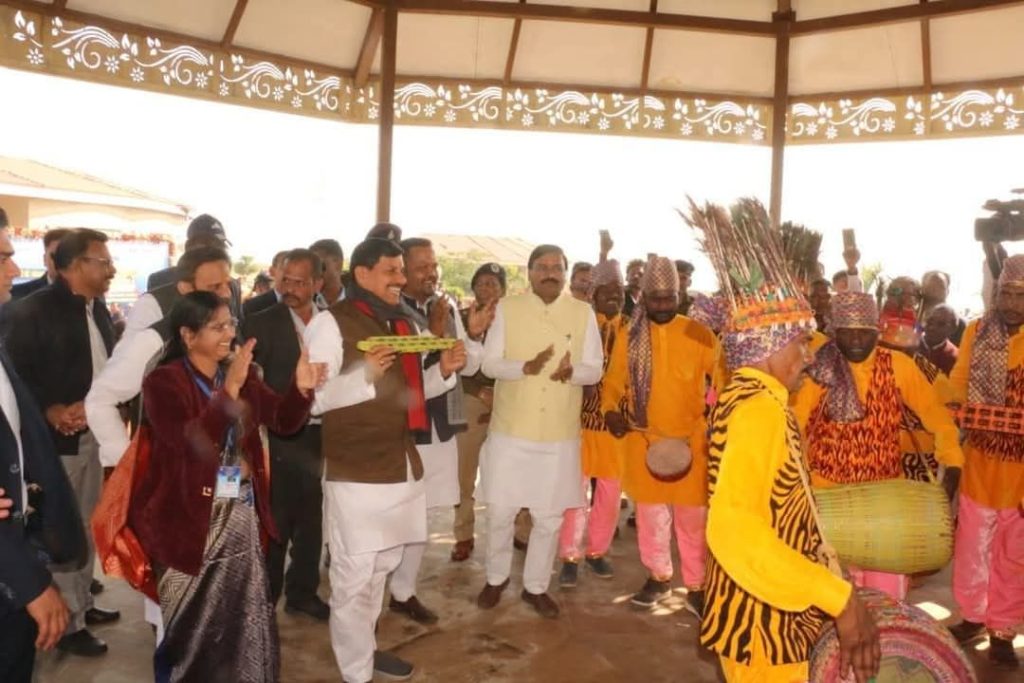 📍 सरसी आईलैंड के उदघाटन के अवसर पर पर्यटन विकास निगम व्दारा आमंत्रित ग्राम बिरहुलिया के जन जातीय कलाकारों की प्रस्तुति के दौरान मुख्यमंत्री डॉ. मोहन यादव ने उपस्थित होकर उत्साह वर्धन किया तथा उनके साथ झांझ करतल भी बजाया।