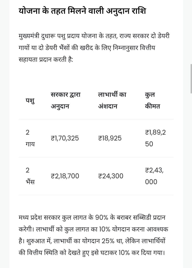 मध्य प्रदेश सरकार ने गरीब और कमजोर वर्ग के लोगों के जीवन स्तर को सुधारने और ग्रामीण अर्थव्यवस्था को मजबूती देने के लिए “मध्य प्रदेश दुधारू पशु प्रदाय योजना” शुरू की है। इस योजना के तहत पात्र लाभार्थियों को अनुदान पर दुधारू पशु (गाय या भैंस) दिए जाते हैं, जिससे उनकी आय में वृद्धि और रोजगार के अवसर मिलते हैं।