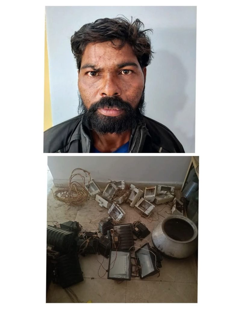 आरोपी के पास से चोरी का सामान – जिसमें [ लाइट, तार 04 बंडल, एल.ई.डी. पार लाईट्स, फोकस लाइट व एल्यूमिनियम का गंजा] कुल कीमती 30,000 रु. बरामद किया गया है।