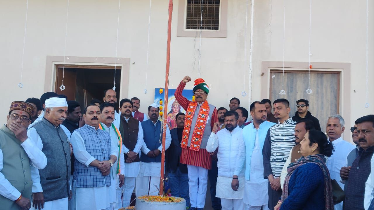 इस मौके पर जिला अध्यक्ष आशुतोष अग्रवाल ने सर्वप्रथम सभी आगन्तुक कार्यकर्ताओं का वंदन-अभिनन्दन किया,और कहा कि आज बड़े हर्ष और गौरव का दिन है,आज ही के दिन 26 जनवरी 1950 को देश पूर्ण गणराज्य राष्ट्र बना था,आज ही के दिन देश का संविधान लागू हुआ था।ध्वजारोहण कार्यक्रम में बांधवगढ विधायक शिव नारायण सिंह के अलावा वरिष्ठ साथी राजेन्द्र तिवारी,ज्ञानेंद्र सिंह गहरवार, दिनेश त्रिपाठी,शंभू लाल खट्टर,दिवाकर सिंह,धनुषधारी सिंह,दीपकछतवानी,सुमित गौतम,सुमित गौतम,आभा निगम राम,नारायण प्यासी विष्णु भारती पंकज तिवारी,संजय तिवारी,विनय मिश्रा,हिमांशु दुबे ,विक्रम सिंह सहित भाजपा के वरिष्ठ कार्यकर्ता की गरिमामयी उपस्थिती रही।राष्ट्रीय पर्व गणतंत्र दिवस के पावन पर ध्वजारोहण के बाद जिला अध्यक्ष आशुतोष अग्रवाल ने कहा कि आगामी दिनों में भाजपा कार्यकर्ताभारतीय संविधान की रक्षा,निष्ठा एवम ध्येय को लेकर जन-जन तक पहुंचेंगे,और पवित्र संविधान को लेकर आमजन को जागरूक करेंगे,उन्होंने कहा कि कालांतर में कई सियासी पार्टियां भाजपा को बदनाम करने की साज़िश की थी,उनका कहना था कि तीसरी बार अगर भाजपा सत्ता में आती है तो संविधान को खत्म कर देगी,पर धन्य है हमारे कार्यकर्ता जिन्होंने पूरे दमखम से भाजपा को पुनः सत्ता में लाया।अंत मे भाजपा अध्यक्ष ने ध्वजारोहण कार्यक्रम में पहुंचे सभी भाजपा कार्यकर्ताओं का आभार व्यक्त किया है।*आपको बता दे जिला भाजपा कार्यालय के अलावा उमरिया मंडल अध्यक्ष नीतू सिंह ने भी भाजपा कार्यकर्ताओं की गरिमामयी उपस्थिति में जय स्तम्भ पर हर्षोउल्लास के साथ ध्वजारोहण किया है।