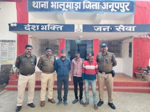 पुलिस अधीक्षक अनूपपुर मोती-उर-रहमान के निर्देशन मे, अतिरिक्त पुलिस अधीक्षक इसरार मन्सूरी तथा अनुविभागीय अधिकारी कोतमा (पुलिस) आरती शाक्य के मार्ग दर्शन में थाना भालूमाड़ा की टीम द्वारा कांबिंग गस्त कर अभियान चलाकर न्यायालय द्वारा जारी गिरफ्तारी वारंट आर सी टी नं. 717/2019 अप.क्र. 342/2019 धारा 279, 337, 338 ता.हि. के आरोपी गिरफ्तारी वारंटी मंगलू उर्फ सरमन यादव पिता राम प्रसाद उर्फ नगू यादव उम्र 25 वर्ष निवासी चुकान, प्रकरण क्रमांक 1902/2021 अप.क्र. 251/2020 धारा 379, 414 ता.हि. के आरोपी गिरफ्तारी वारंटी विनयकांत पाठक पिता गिरजा प्रसाद पाठक उम्र 24 वर्ष निवासी भेडवा टोला थाना भालूमाडा एवं वसूली वारंटी अंबिका प्रसाद पिता अमोली केवट उम्र 38 वर्ष निवासी देवगवाँ थाना भालूमाडा को गिरफ्तार कर न्यायालय पेश किया गया है । पुलिस द्वारा अरोपी मंगलू उर्फ सरमन यादव पिता राम प्रसाद उर्फ नगू यादव निवासी चुकान, विनयकांत पाठक पिता गिरजा प्रसाद पाठक उम्र 24 वर्ष निवासी भेडवाटोला एवं अंबिका प्रसाद पिता अमोली केवट उम्र 38 वर्ष निवासी देवगवाँ को पकड कर न्यायालय में पेश किया है।