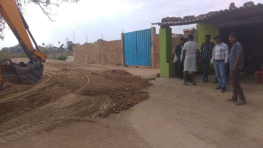 पुरानी सड़क के बीचोंबीच खोदी गई नींव, फुनगा में अतिक्रमण पर नहीं लग रहा लगाम